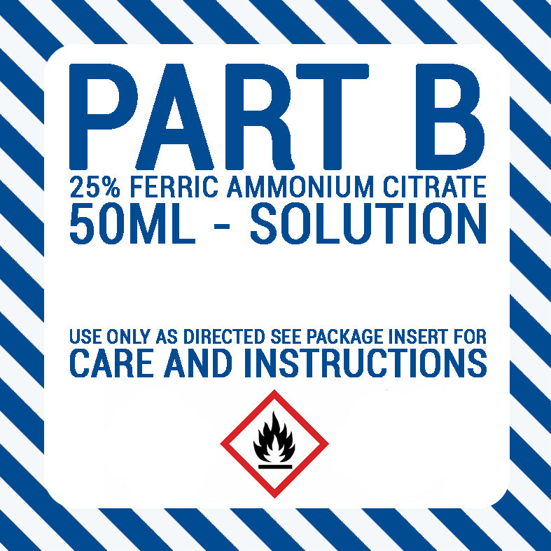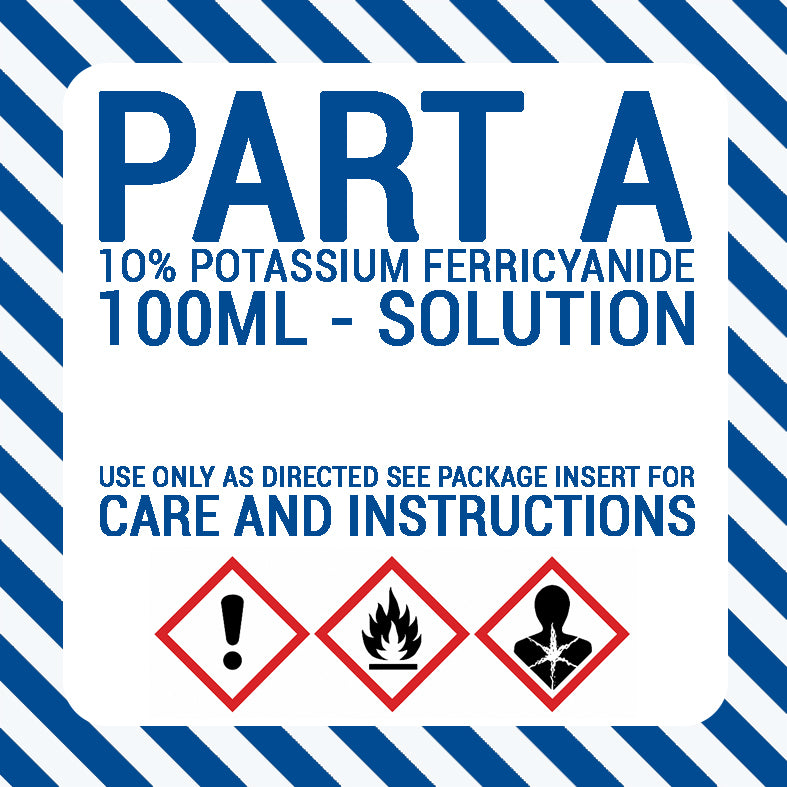 - Solution B – Potassium Ferricyanide — the “blue maker,” bringing those deep Prussian blues to life.
